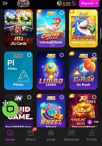 2V Game is an online gaming app that offers slots, card games, and other quick games. Players join the platform, play games, and earn real money.then The app focuses on simple design and smooth gameplay.